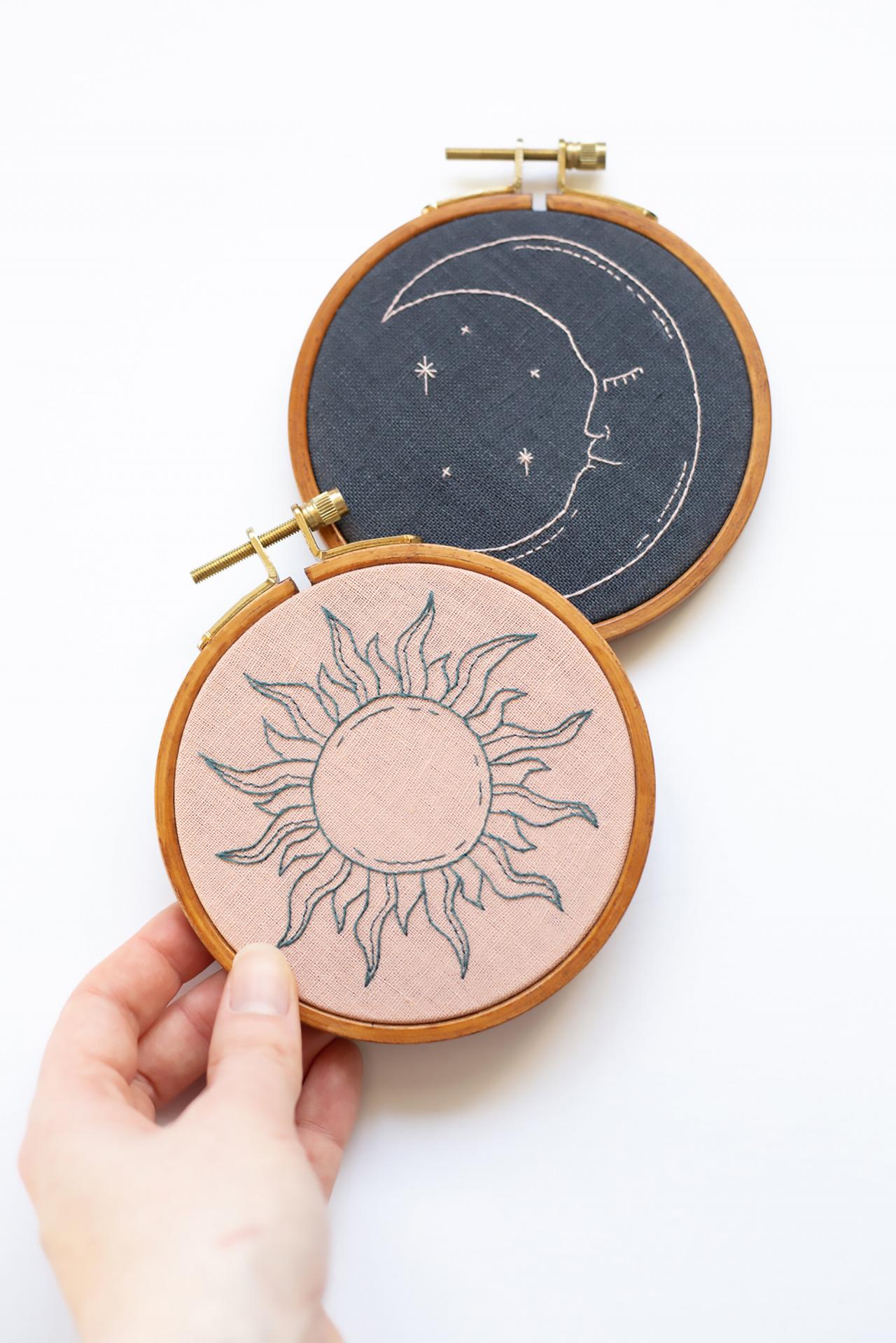 Celestial Sun Moon Pdf Embroidery Pattern Tutorial Digital Downloadable Diy Pattern For Beginners Hand Embroidery Art Embroidery Hoop Art Embroidery Projects