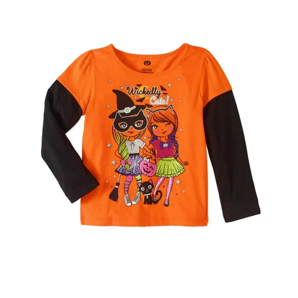 Toddler Girls Orange Wickedly Cute Halloween Shirt Witch Black Cat T Shirt 2t Walmart Com